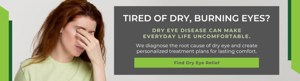 Dry eyes can lead to uncomfortable symptoms, like stinging, burning eyes, sensitivity to light, difficulty wearing contact lenses, and blurred vision, among others. These painful symptoms can interfere with your life, making everyday tasks like computer work and driving difficult.